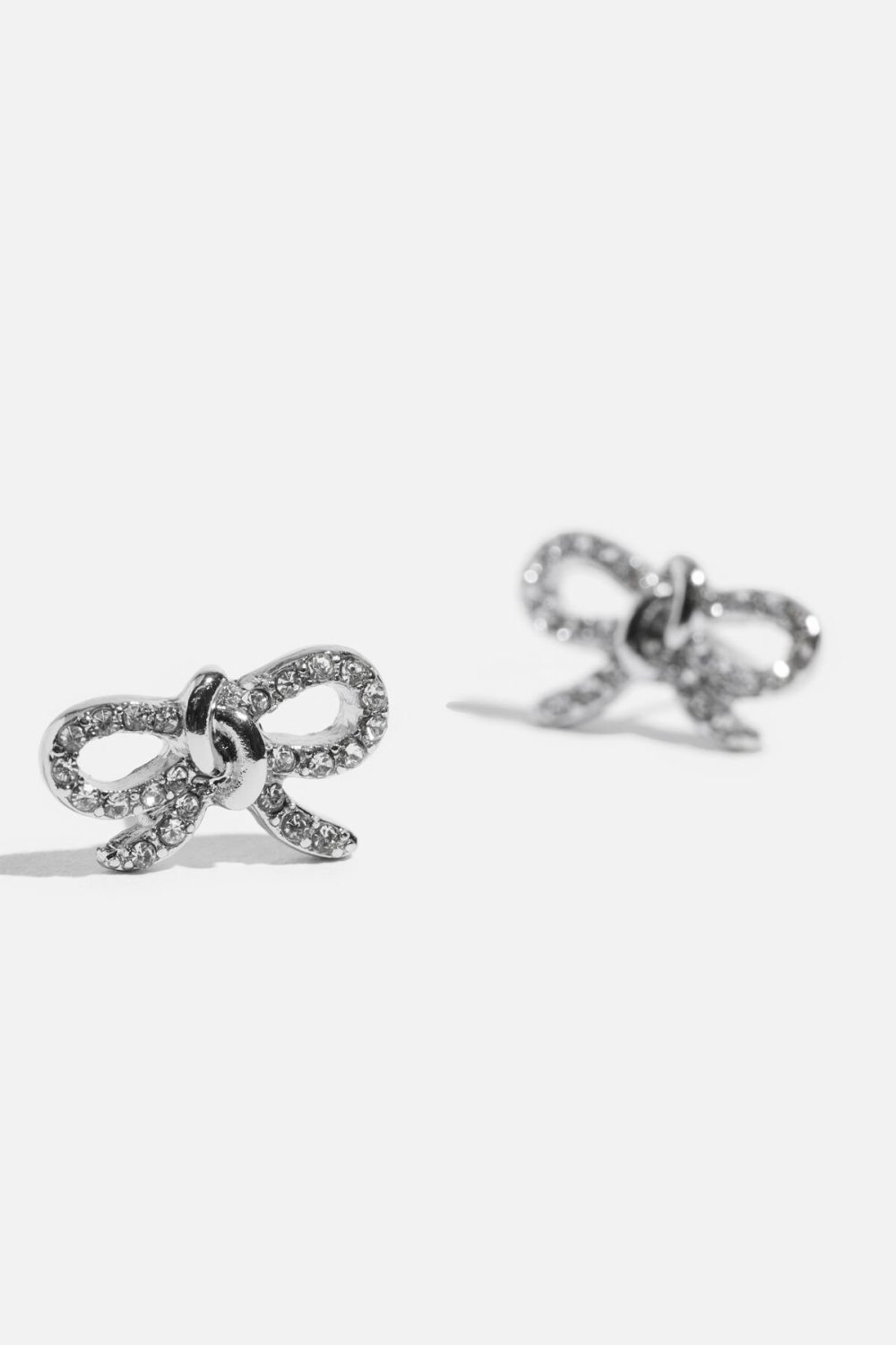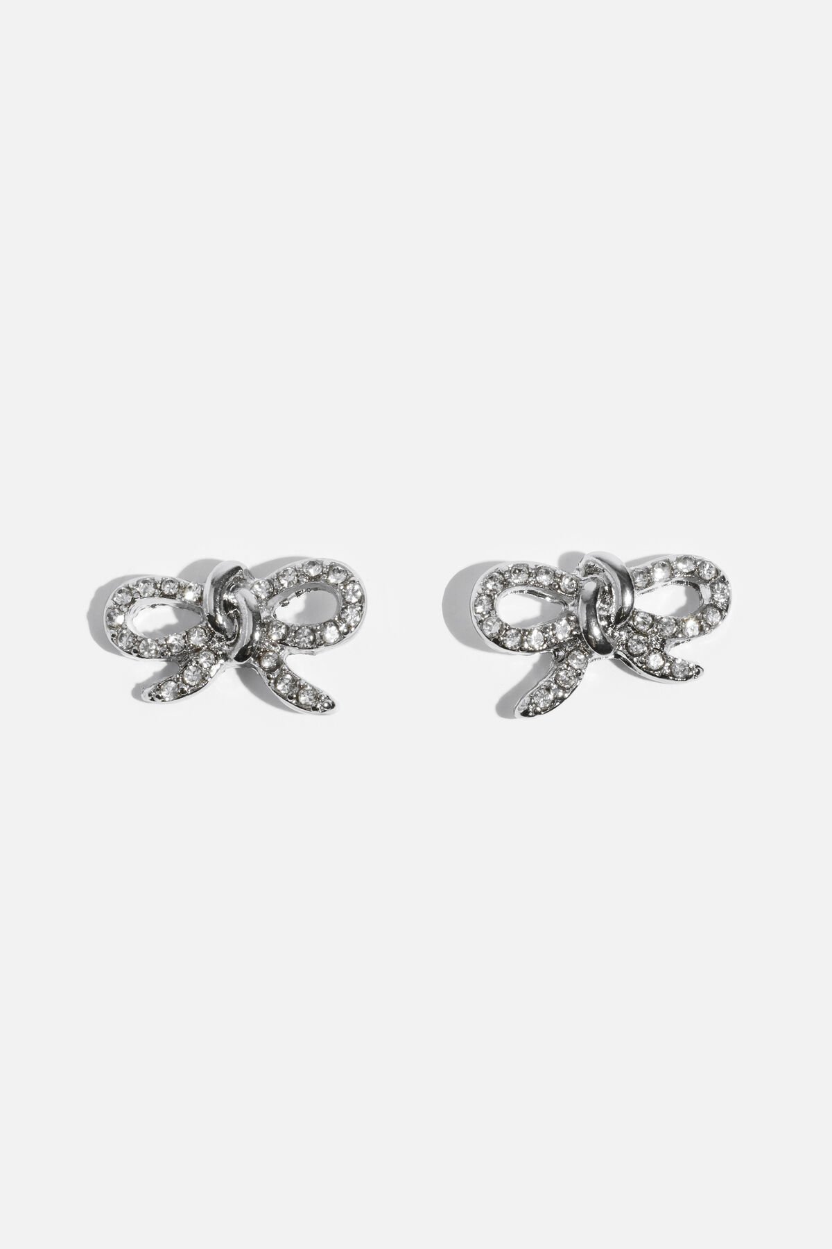 A delicate and coquette pair for every occasion. Features Gemstone detailing at bow Faux-pearl beads Bullet backing with stopper Size Width: 26mm Length: 20mm Materials Cubic zirconia, faux-pearls Imported